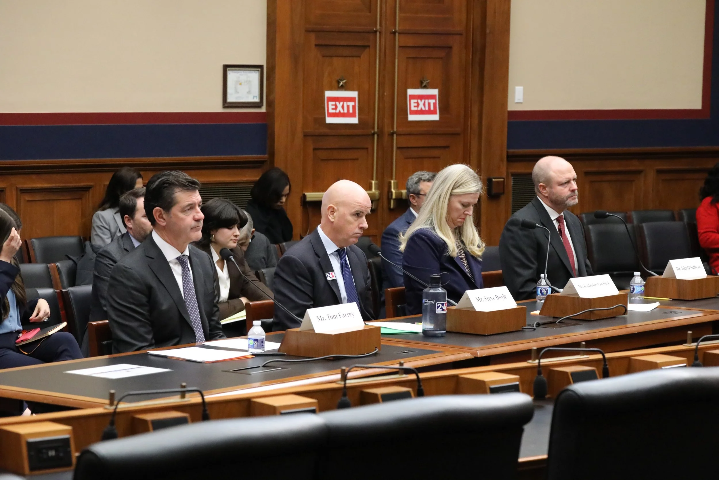 Witnesses, L-R: Tom Farrey (Aspen Institute), Steve Boyle (2-4-1 Sports), Katherine Van Dyck (consumer advocate), and John O’Sullivan (Changing the Game Project). Photo: House Subcommittee on Early Childhood, Elementary, and Secondary Education.