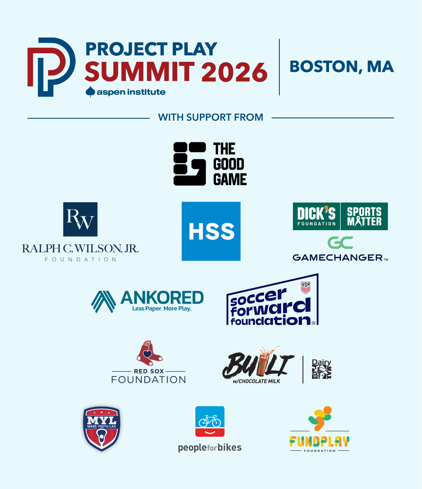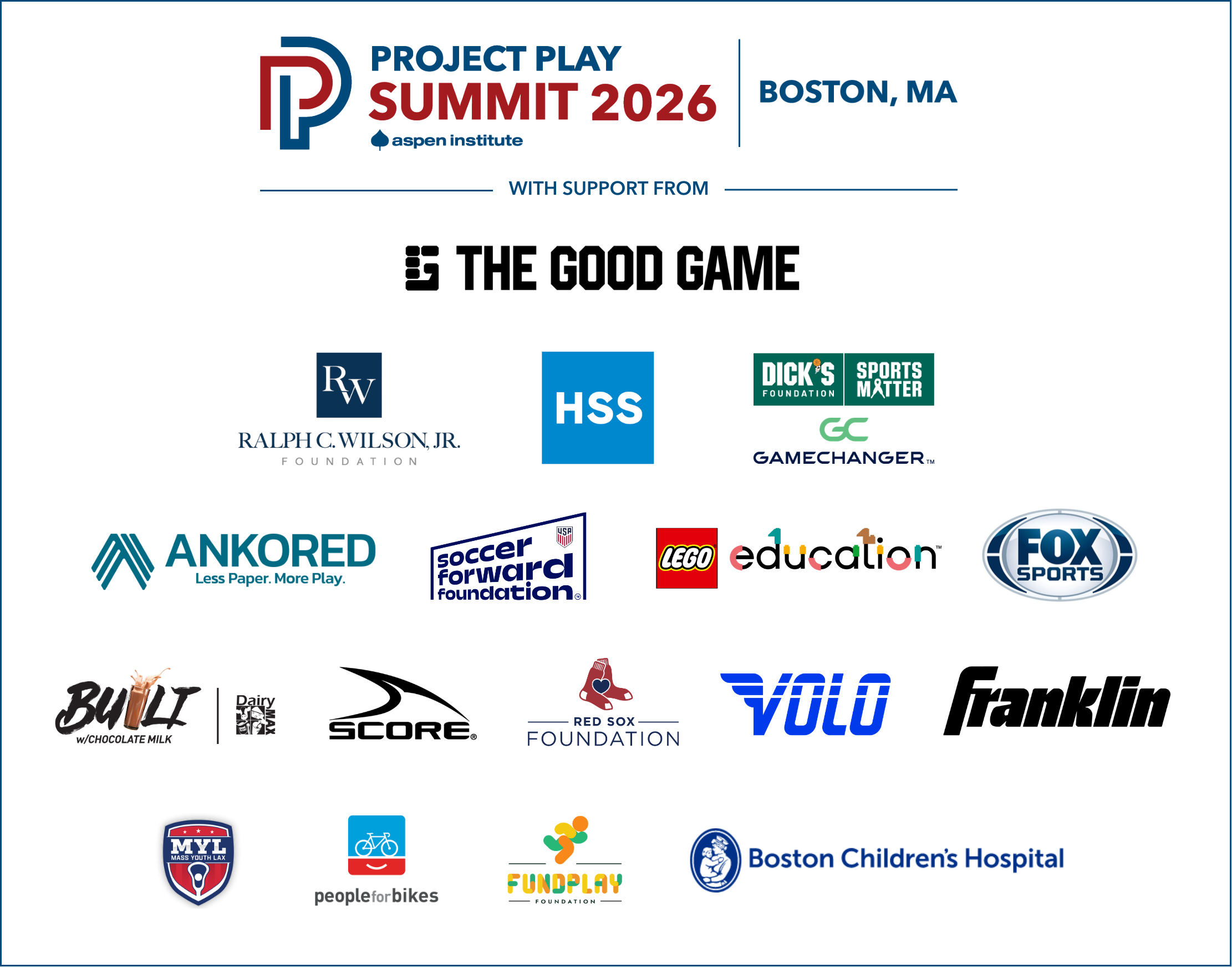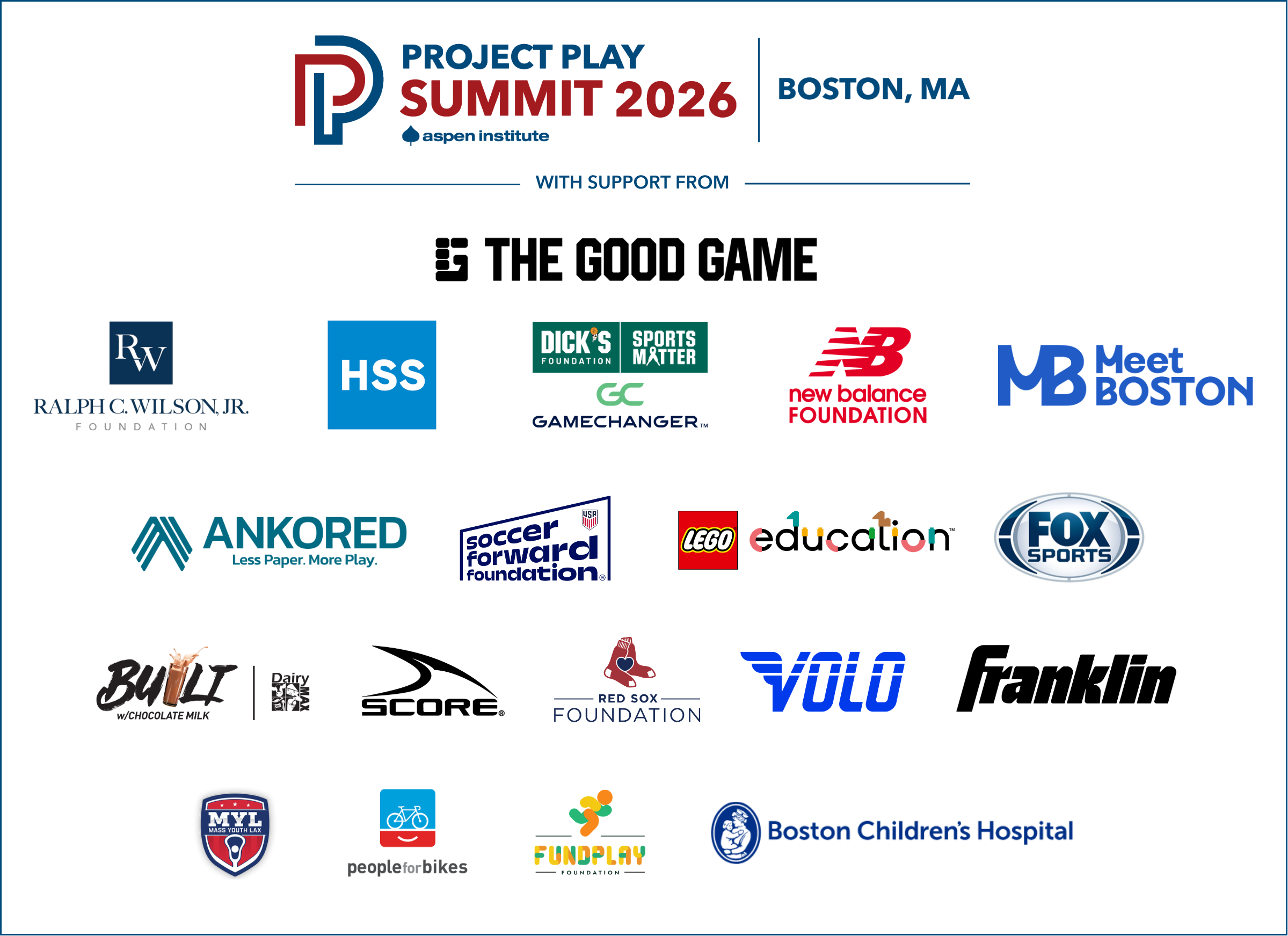Sponsorships for Project Play Summit remain available. Please contact Project Play Summit Director Katherine Quinn at katherine.quinn@aspeninstitute.org for more information.