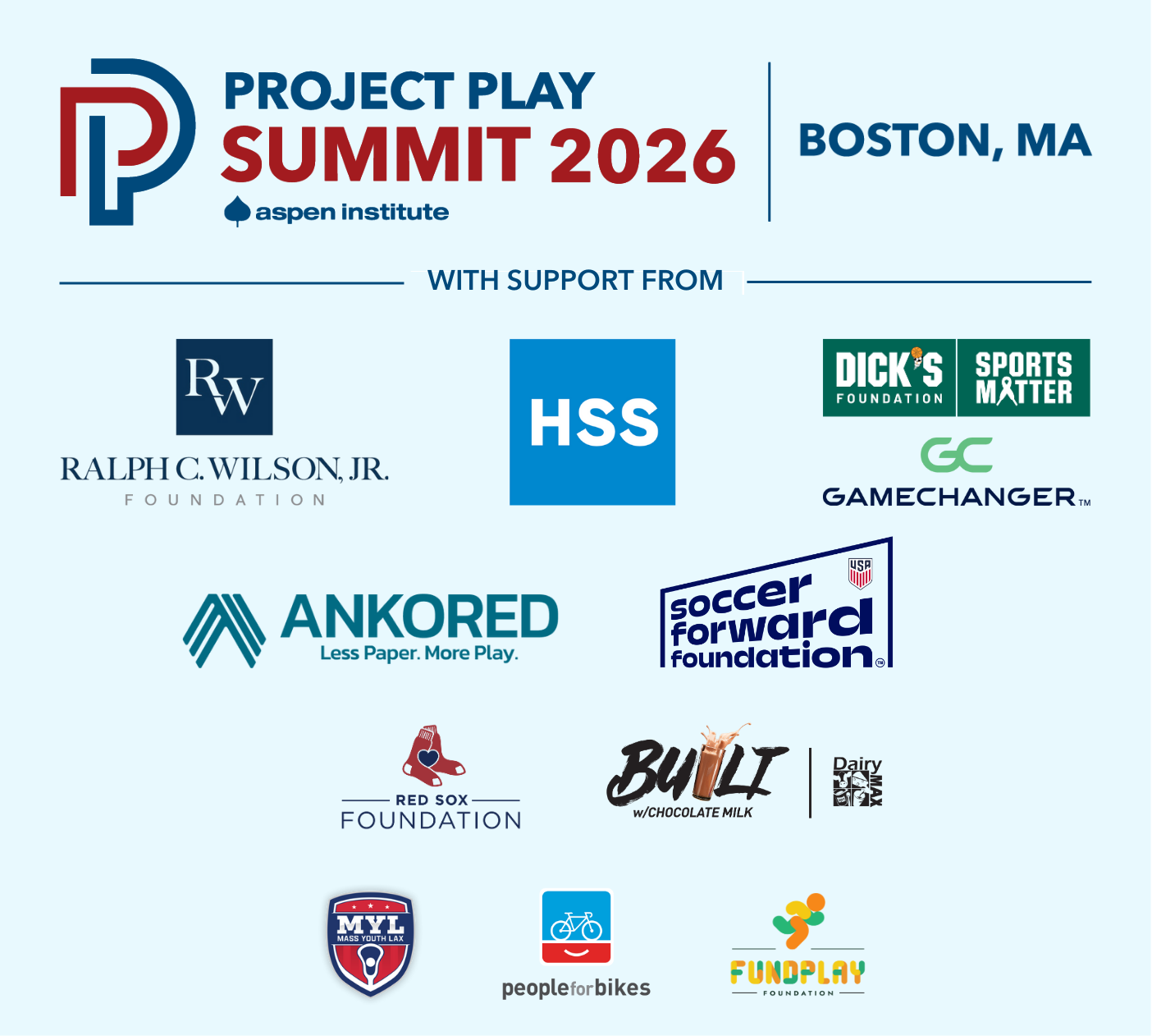 Sponsorships are still available for the 2026 Project Play Summit in Boston. Contact Katherine Quinn at katherine.quinn@aspeninstitute.org for more information.
